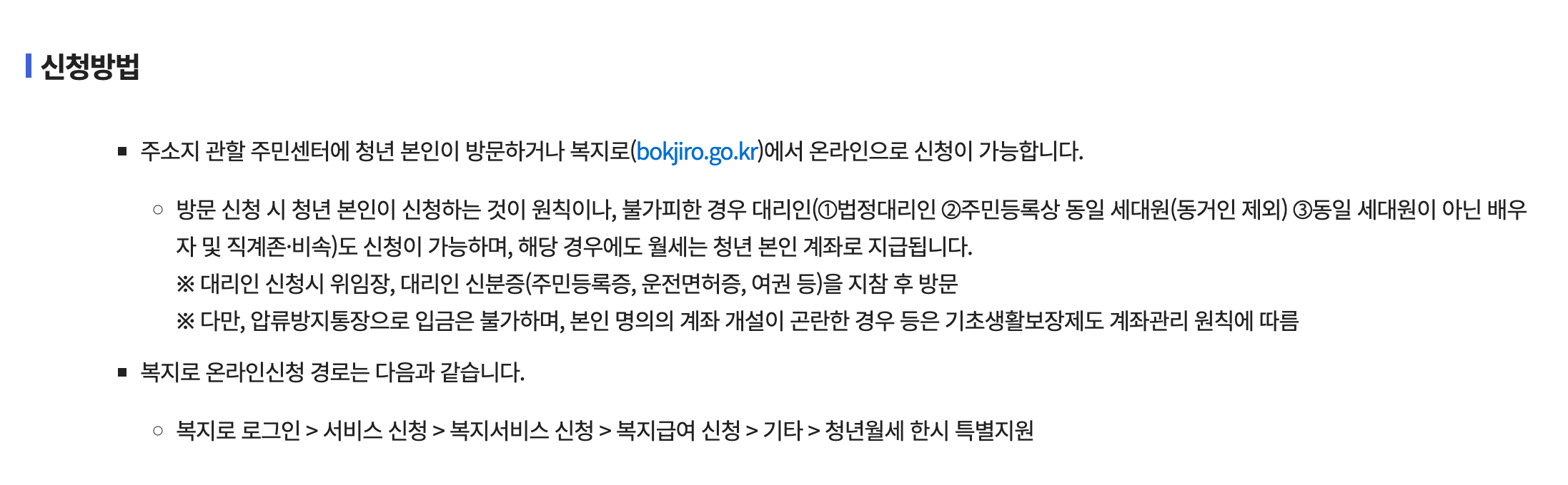 신청방법 : 복지로 홈페이지 온라인 신청