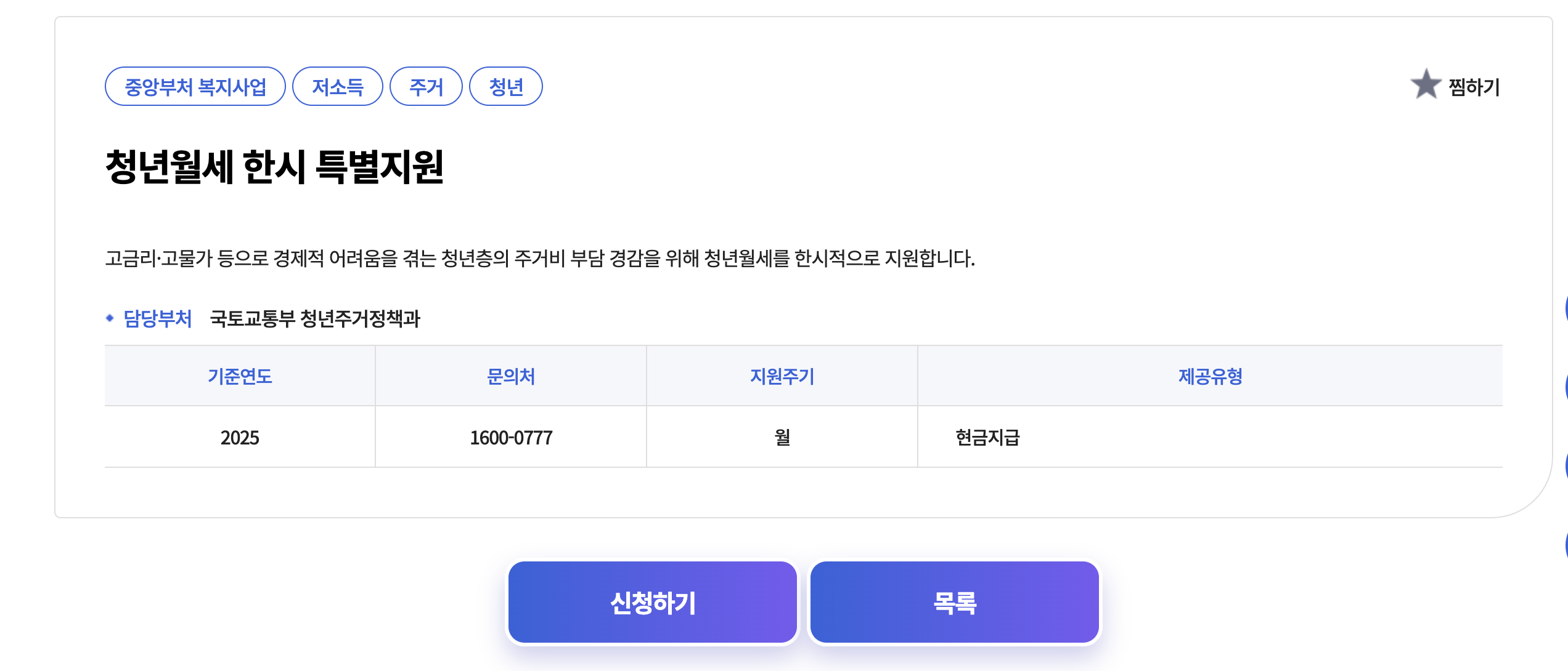 청년 월세 지원 정보