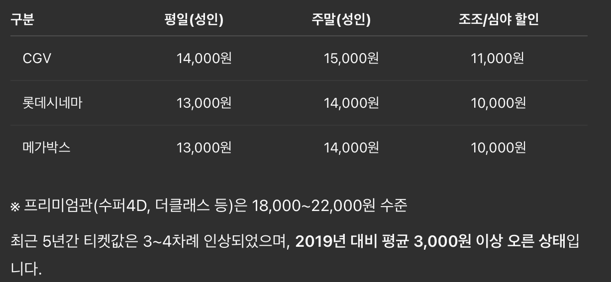 🎥 영화는 모두의 문화이자 일상입니다. 티켓값이 합리적인 수준에서 유지되고, 다양한 혜택과 서비스 경쟁이 지속되길 바라는 마음으로 지켜봐야 할 시점입니다.