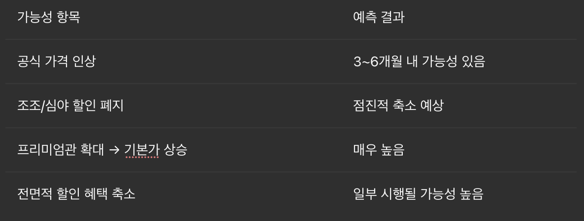 그러나 이는 ‘신규 프로모션’이나 ‘포인트제 강화’ 등 간접적 혜택으로 나타날 가능성이 높습니다.